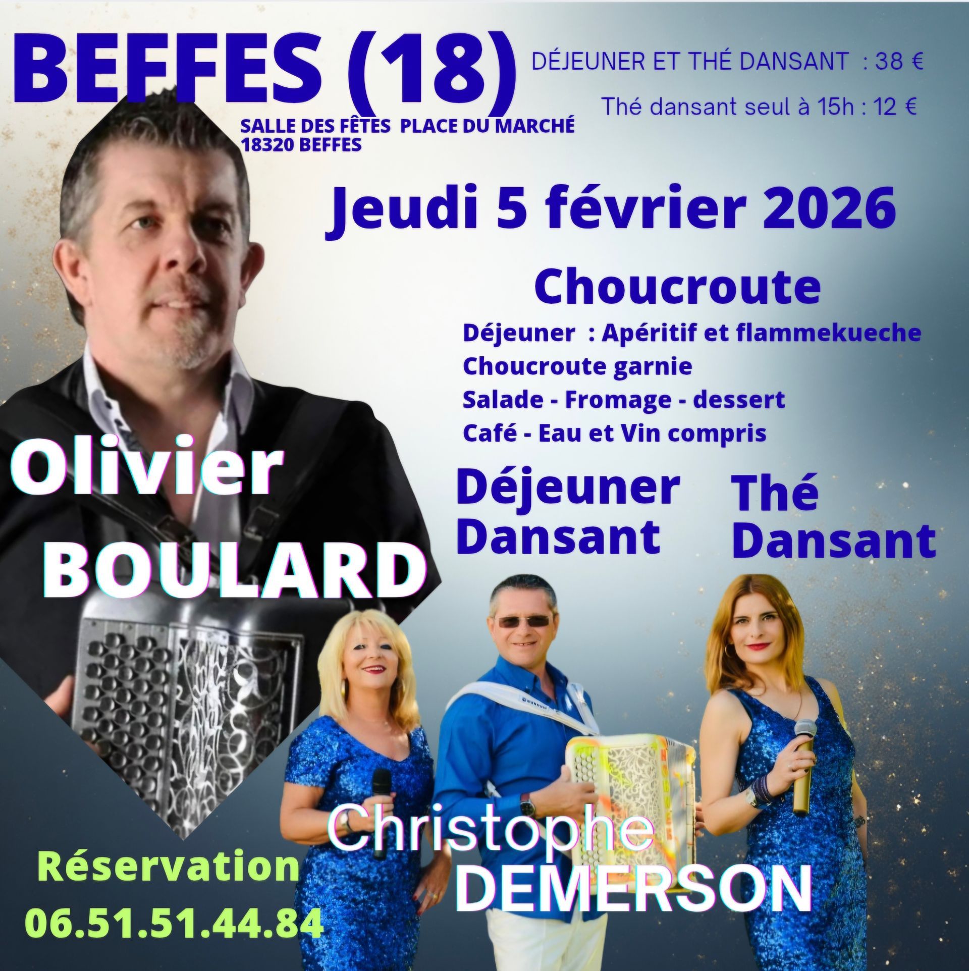 Déjeuner dansant 12 h ou Thé dansant 15 h –